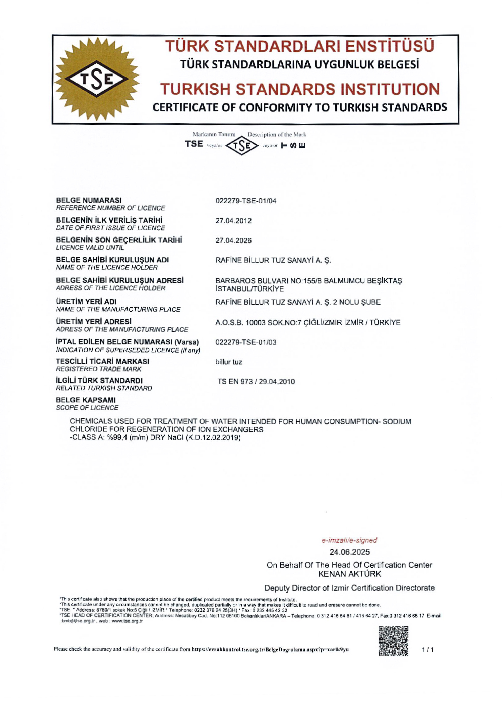 TS EN 973 Standard For Chemicals Used For Treatment Of Water Intended For Human Consumption